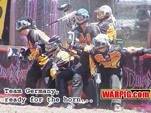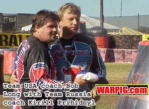 A surprise came at the captain’s meeting the night before the tournament began when the teams voted not to allow sideline coaching. The X-Ball rules allow each team to have one coach on the sidelines during a game allowed to talk to his or her team during the game. Teams Portugal and USA voted in favor of the rule, but the remaining six teams voted against it, most citing that it would change the game too much. Since the audience is allowed to talk, Team USA ended up having an advantage in the tournament. Every match where the team took to the field, spectators were calling out positions and information to the players, and this was a frustration to many of the foreign teams who lacked a similar advantage. “Teams eventually had people planted in the stands,” said Team Canada’s Coach, Mike Ratko. “If the coaches could talk it would balance out that advantage.” According to Richmond Italia, by the tournament’s end all of the teams that had competed were in favor of allowing the coaches to speak during the game. “Now that they have had a chance to play, they realize the coaching will help the game and not take away from it,” he said. Procaps Vice President of Marketing, Craig Miller also addressed the issue in an interview with WARPIG.com. “The rules call for a larger distance between the net and the stands to minimize [the spectator’s effect on the game]. This is meant to be an audience participation sport – we don’t want to mandate quiet in the stands. The rules call for each team to have a coach on the sidelines that is able to speak freely, but a majority vote from the teams voted this down at the captains’ meeting.” Miller says that this was a lesson learned, and future X-Ball events will feature stadium seating that is further away from the field’s edge. During the intensity of the tournament a number of teams complained of biases in the reffing, favoring team USA. In discussion after discussion with team coaches, ultimate ref Dave “Opie” Thomas of Team Image could cite a bad call that went against team USA for every one that went for them. “We went out of our way to make sure we picked a crew that would not be influenced,” Richmond Italia said of the referees who were taken from Nasty and the All Americans 2. “In paintball in most cases when people loose they blame the refs. The refs made mistakes, but it wasn’t a bias, they were honest mistakes. Those referees, in a span of 3 days spent 29 hours of game time on the field.” Italia is already looking at ways to rotate reffing crews to keep them more refreshed during a lengthy X-Ball competition. Team Sweden’s withdrawal from their match with Team USA happened during a particularly intense moment in the tournament. Players from each team had bumped each other earlier on, and Sweden had just made a flag hang that resulted in a point for USA because the flag carrier had a hit on him. Chief amongst Sweden’s complaints during the tournament were the reffing, and spectators coaching the US team from the stands. After some cooling off time, the team chose to withdraw from the tournament, citing exhaustion both physical and mental. During the final match, Sweden’s coach Magued Idris said that he thought “the tournament was 98% perfect.” He would like to see the coaches drawn from an international pool rather than a single country because even if there was no bias with single country referees, a perception of a bias was affecting how they were playing. Lessons were definitely learned at Nations Cup and a number of minor changes are being made to the X-Ball rules in order to improve future events. One of the surprises to most involved was the seating – there wasn’t enough. The grandstands were nearly full for almost every match, and overflowing with crowds around the nets during anticipated matches. “I did not expect to see so many people in the stands consistently. As a participant it was excellent to see,” said Canada’s Coach Ratko. “We needed about twice the grandstands that we had,” said Craig Miller Game scores were higher than anticipated, and the games ran longer than expected. This was because the world class teams competing played with greater intensity than the teams that played in some of the early test scrimmages that ProCaps had held to give the rules a dry run. The higher scores also meant longer match times, because of a 3 minute time-out occurring after each flag hang. “We’re going to change from four 10 minute quarters to two 15 minute halves that will reduce the overall game length from about 2 hours to about an hour and a half,” said Richmond Italia. He continued saying, “Minor penalties will be removed when the opposing team scores a point.” Rather than let a team be stuck with too few players on the field through several games, one player who is serving time for a minor infraction will be pulled out of the penalty box each time a flag is hung, to prevent one team from steamrollering the other if there are several players serving penalties. “In the US vs Russia game, the US took advantage of a penalty,” said Italia. “They racked up 7 or 8 points while Russia had fewer players on the field.”