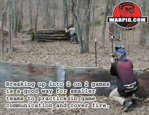 As a new team, you can go to your local field and at least begin practicing and playing together by going to open play. This play together will help you become familiar with each other and it can be a good first step. Next, you might try to find another local team and setting up a scrimmage with them. Don’t be overawed the first time you play another team, it’s very possible that you won’t win the first time you play, but your team will improve, and that’s what really matters. The first time I set up a scrimmage with another team, my teammates were so intimidated by the other teams matching uniforms and guns that they were joking about shooting me off the break. It’s a difficult beginning step to take, but if you put the effort forth and actually scrimmage with another team before you go to a tournament you won’t have a reason to be intimidated at the tournament and most importantly, you’ll play better. Now that your team has started to play together and get a feel for each other’s strengths and weaknesses, it’s important to really focus on some of the nuts and bolts of play. One of the most important parts of playing as a team on the field is communication. Of course, the best way to build good communication is by playing and practicing together, and the longer you have played and practiced together, the better your communication will be. However, that doesn’t mean that there aren’t some things you can do to help improve your communication in practice. One drill that will help you improve your communication skills is a simple two on two game between members of your team.