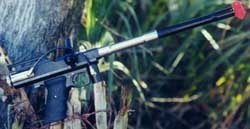 Unfortunately we did not see the results we were hoping for. The only noticeable difference came with the adjuster screw all the way in. About half of the paintballs flew high enough to clear the pipe and landed a good ten to fifteen feet further downrange, while the other half hit the ground in front of the bunker. While it was an increase in distance it was hardly what one would describe as phenomenal. Our next step was to test with some different types of paint. Some Pro Ball and Diablo went though the gun with similar results. No change there, so the next area we decided to explore was barrels. We began fitting the paintballs into our selection of barrels and found them rather snug in most. The Brass Eagle two-stage barrel was the least snug, but it could hardly be described as a loose fit.