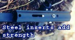 Internally, the Z Body features a steel insert to brace the bolt spring, and take the impact of the bolt as it strikes forward, something the aluminum alone would not do well. The power-feed is held in place by two cap screws and is dovetailed into the body. This construction method means that it can be removed for access to clean its nooks and crannies, unlike the stock welded powerfeed. Below the powerfeed is a threaded steel insert where the front grip frame attaches to the body. Again, this is a point where steel is stronger than aluminum, and the insert protects from the danger of stripped threads.