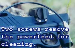 This is where we ran into a problem. On the standard Minimag body, the powerfeed comes from the left side, and puts the hopper on the right. On Z Body, the power feed goes from right to left, so the main bulk of the powerfeed was right in the way of the stiff braided steel air hose. On the basic Automag configuration the air hose is going to a backbottle, or bottom line, or as some players opt straight to a compressed air system or remote. In those cases the air hose would not be an issue. It was only the stock Minimag hose that faced a problem. In the South Florida climate CO2 stays warm enough that chilling and liquid are not a problem for the ‘Mag as long as the tank is mounted vertically (which keeps the liquid CO2 down in the bottom of the tank). More shots out of a smaller tank makes a good argument to use CO2 over compressed air when possible, so we opted to stick with the vertical tank arrangement.