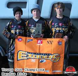 One of the highlights of Saturday's action was play in the 3-man Young Gun division. In the preliminary round, 17 teams played seven games each for the right to advance to the semi-finals. Advancing with the top seed was Mayhem Kids, who battled Chaotic in a best of three series for a spot in the finals. Mayhem Kids won the series two games to won to advance. The other semi-final pitted Urban Quest I against Exodus Kids, with Exodus Kids winning in two games. In the final, Exodus Kids defeated Mayhem Kids to bring home the title. The 35 rookie teams played in three preliminary brackets, with the top five teams from each bracket advancing to the quarterfinals, in addition to one wild card team. Leading their respective brackets after five games are Mad Dogz, Epic and Team LTZ. The Rookie teams will finish their preliminary round games Sunday morning. Advancing to the quarterfinals of the 7-man Novice division were Kamikaze Kids, Nurv, LV N Phat, Black Magic, MPI, Team RIP Novice, Street Hustlers, Urban Quest II, LA Exodus, Organized Crime Black, Thug-Life, Total Chaos, Absurd Addition, Full Force Factory and Expo Army. These teams finished in the top five in their preliminary round bracket. Cent Cal Paranoid will join the quarterfinals as the wild-card team.