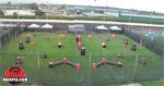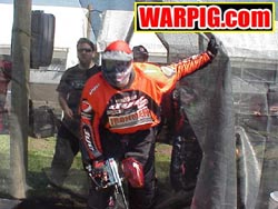 In the audience for this match were a number of people from the Hollywood television and motion picture production industry, a notable person among them was Penny Marshall, who's directing credits include Big, A League of Their Own and Awakenings. Following the Miami-Philly match a special 3 game match was held between Effect and the Americans, this time with a new roster for Philadelphia. With special exhibition rules the Americans' team suddenly swelled to 7 members - all from the VIPs in attendance. Before the start of the match, Chris LaSoya's birthday was announced, LaSoya claiming it was his twenty first, those in the know figuring another 9 years need to be added in to that number. The exhibition match progressed well, the American's new players defeating Miami 3 to zero in entertaining and often comical moves - one player barely big enough to carry his paintgun made a Dorito bunker on the 50 yard line off the break - riding piggy back on Spesh. The next match up was between Detroit Thunder and the Oakland Assassins. Oakland, still undefeated in the NXL ran into Detroit like a Mack truck hitting a compact car. It wasn't until nearly the end of the first half that Detroit was able to score a single point - to screams and applause from the crowd. They gained another flag hang in the second half to a similar response from the audience, but these two points were overshadowed by Oakland's 17. The final match of the day was between New York Xtreme and Baltimore Trauma. An impromptu poll of the audience, asking them to cheer for their favorite side yielded screams for Trauma, and near silence for Xtreme - definitely Trauma had the crowd on their side. Trauma started out gaining early points with Xtreme catching up, and the two teams going back and forth before Trauma took a decisive lead. In the second half Trauma was solidly ahead, but New York closed the gap. With a minute and a half left on the clock the score was 9 to 10 in favor of Trauma. Xtreme made a flag hang tying up the game with 11 seconds left. The next game was stopped by the clock with no points earned leaving the match tied at 10 to 10 - both teams earning a single point in the league rankings. Texas Storm lost to Nasty 4-9 in the Division 1 X Ball field, while Twisted Factory beat out Strange 9-3 on the Division 2 field. Twisted Factory would advance to the finals. Hurricanes beat out TKO, sending them home and setting themselves up to play Strange 2 first thing in the morning on Sunday, the winner of that match to advance to the final round against Twisted Factory. Novice's factored in sixteen teams advancing to the semi-finals, the games wrapping up shortly before 8 o'clock, the cut being 427, edging out good contender Havok from making the semi finals by just one point. KAPP Factory and Evil Factory coming in first and second placement after 8 wins during preliminaries. Rookies wrapped up with eight teams moving onto semi finals, their cut remarkably low at 254 points, the highest rank team Mayhem with a 590, a new team following in the footsteps of the old Image and X Ball's Trauma. SUNDAY The perfect paintball weather that eluded the Mardi Gras Open continued on to the last day of the LA Open as the 10 man pro teams went straight into their finals. Simultaneously the 10 man amateur, novice and rookie teams played their semi finals games. Dogs and Dynasty won their first two finals games, both beating out Legacy and Bushwackers. The last games for the Professionals would pit the Dogs against Dynasty as well as Legacy against Bushwackers. The spread between first and second place was only 3 points. Not surprisingly, KAPP and Evil showed themselves strong winning their first two games and guaranteeing a slot for themselves in the finals. In the Novice bracket, Atomix won all three of their games, giving them a spot in finals. In the second division for the Novice, the games were definitely tighter. Justice and Platinum headed into the game against each other with only 5 point difference. Team No Name from division 3 was the only team set to knock out the Bad Company Kids and Fat City looked pretty solid after two games in the fourth division. Novice semi finals were definitely tighter with only one team advancing from each division. Rookies saw Mayhem and Outlaws advancing despite Sin and Lockdown not having played their last games. Both teams had dropped to the R1 and R4 teams. Cartel Empire and Rock It Kids also saw themselves settled in the finals despite the third game not having been played for the second division. Professional finals had an exciting game for Naughty Dogs. They faced off against Dynasty for their last game, only losing one body to seal the win of the first place Professional bracket. This was a solid win for them, losing only 23 bodies in the preliminary games and eleven in the finals.